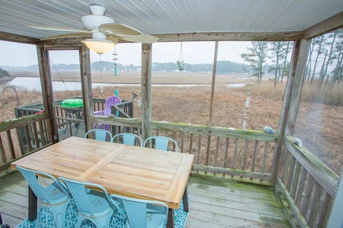 Who doesn’t love a beach vacation — especially when it is right outside the front door? Besides the beach, you may want to explore the many nearby restaurants and family-friendly activities in town. Bright furniture makes porch sitting much more welcoming to kids, and family game night in the enclosed porch next to the water is a must. Perk? Pets are welcome.