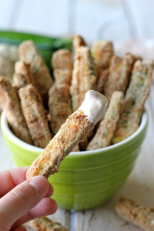 Greek yogurt is the perfect base for so many delicious homemade sauces, like ranch and tzatziki. Damn Delicious’ garlic chipotle aioli goes great with zucchini fries, as pictured here, but I have a feeling you’ll make this on repeat to use in lots of other ways too.