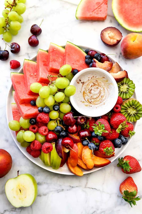 Whether you want to jazz up a fruit platter for a party or entice your kids to eat more fruit at home, whipping up Foodie Crush’s easy yogurt dip is the way to go. You literally just whisk together yogurt, honey, and pumpkin pie spice, and plate it up with the fruit of your choice.