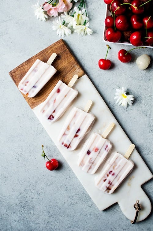 Lychee Cherry Frozen Yogurt Popsicles