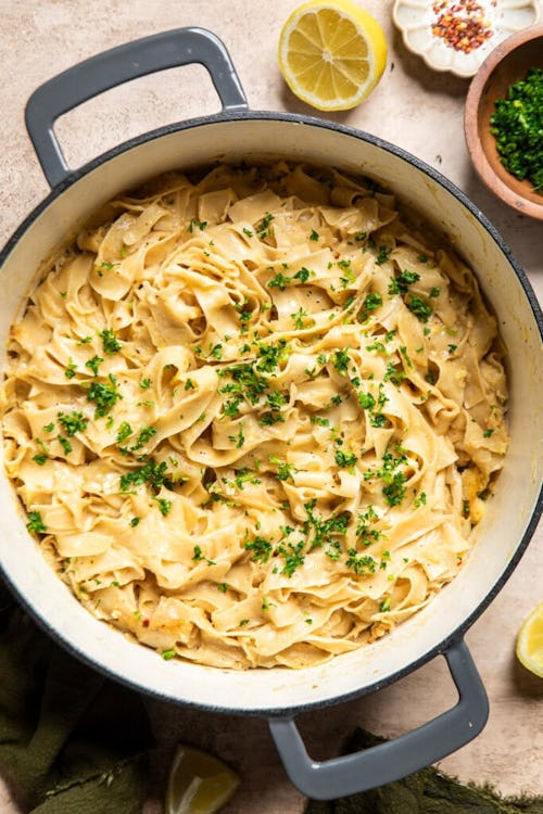 One Pot Vegan Creamy Lemon Garlic Pasta