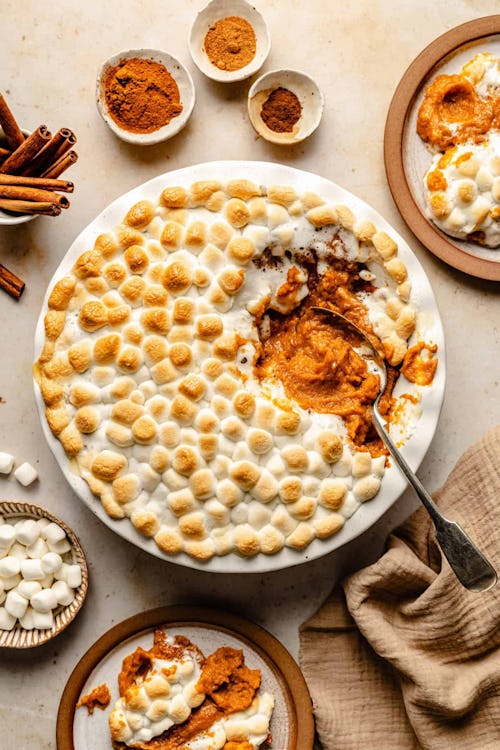 Sweet potato casserole is kind of a Thanksgiving thing, sure, but this recipe from All The Healthy Things manages to make it feel a little more spring-appropriate. The brown butter and orange zest in the dish really transform it into something new. Your guests will definitely be asking what you put in it.