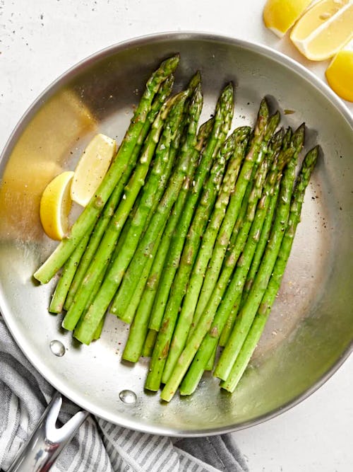 Simple, fresh, and fast — sauteed asparagus is the perfect spring-y Easter side dish if you ask me. It takes about 15 minutes from start to finish before it’s ready, so it’s an easy one to make while your family nibbles on the deviled eggs.