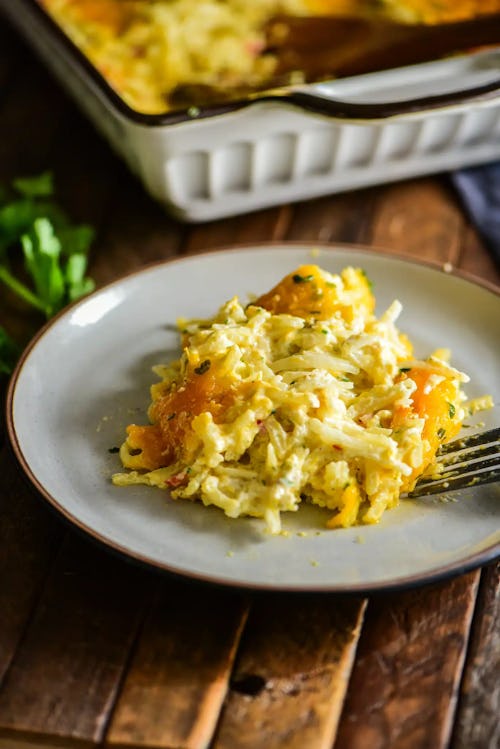 Take 10 minutes to mix and season all the ingredients in this recipe from Dude That Cookz, then bake for 50 minutes and enjoy a cheesy, melty hashbrown bake. You can combine everything a day or two in advance and keep it in the fridge until you’re ready to bake too, which I love for a day-after-Thanksgiving pick-me-up before breaking back into the leftovers for lunch.