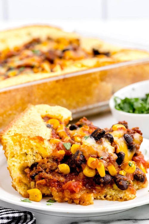 Want a super comforting cozy chili recipe? This cornbread and chili casserole from Princess Pink Girl will make you feel all warm and happy. It’s not much more work than making your usual fave chili — just mix up some store-bought cornbread batter in a casserole dish and pour the chili into the center before baking.