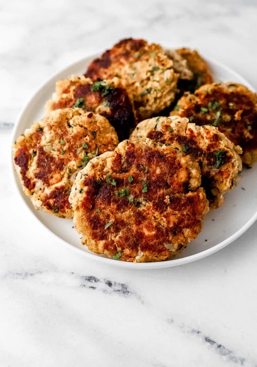 If you like the idea of salmon patties but want everything else about the dish you’ll use figured out, go for The Curious Plate’s ginger salmon burgers. You’ll serve ‘em up with quick pickles and arugula, and a delicious sesame mayo.