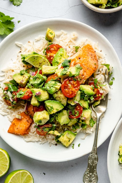 Avocado lovers, this salmon dish is for you. All The Healthy Things’ recipe for pan seared salmon is easy to follow and yields crispy filets you can use in so many ways. Topping them with a homemade avocado salsa only takes a few extra minutes, but adds so much delicious flavor and nutrition.