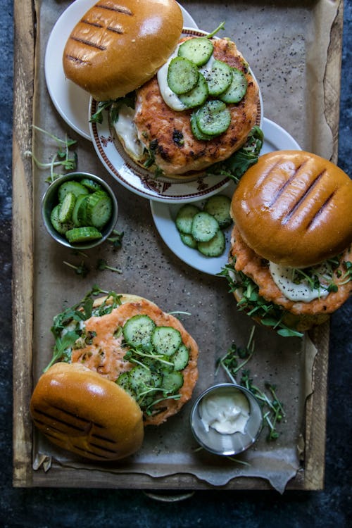 Easy Ginger Salmon Burgers with Pickled Cucumbers