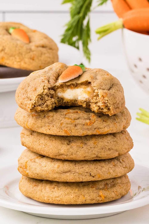 While not expressly fall-themed, carrot cake has a lot of the flavors we associate with the season. These stuffed carrot cake cookies from Princess Pinky Girl feature a cream cheese frosting filling, and the cookies are bakery-sized to accommodate it. Who doesn’t love a giant cookie?