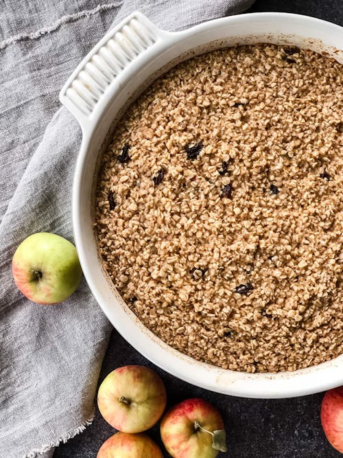 This apple pie baked oatmeal from A Pretty Life in the Suburbs is as wholesome as it sounds — and it’s really hard to mess up. Again, easy is the name of the game, and this recipe doesn’t require you to chop a bunch of apples, peel anything, or do a bunch of work. Use applesauce and a few everyday ingredients like rolled oats and spices, and just mix it all up. You can prep this the night before as well, so your family has a perfect, warm fall breakfast when they wake up.