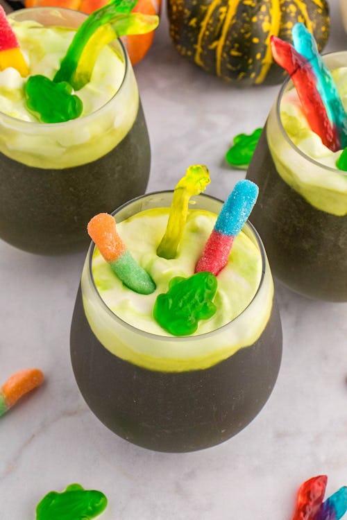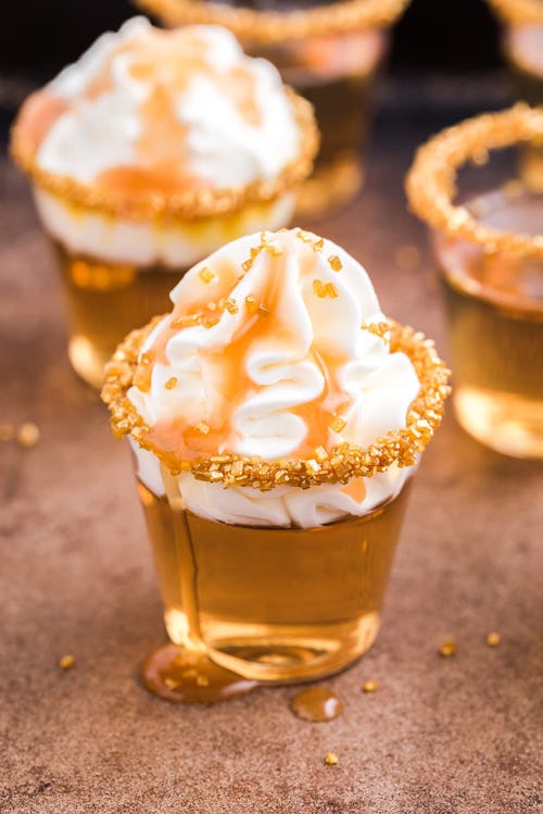 If Halloween makes you want to warm up inside Hogsmeade and maybe snog your new crush in the corner, butterbeer Jell-O shots will appeal to you. Princess Pinky Girl is the expert on festive Jell-O shots, and these are just as creamy, sweet, and delicious as the original beverage. Her layered candy corn shots are so cute for parties that aren’t Harry Potter-themed.