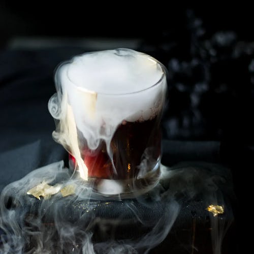 Have you ever heard of kalimotxo? It’s a drink that’s equal parts red wine and cola originating from Spain, where it’s most often served with charcuterie and snacks. So, what better party drink could there be? The red color makes it perfect for Halloween, and the dry ice and gold leaf touches in this recipe (courtesy of Wander Spice/Yummly) make it very vampire-y indeed.