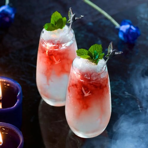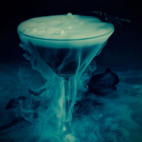 Want to serve something as black as your wicked heart? *Witchy cackle* Well then, you have to try Climbing Grier Mountain’s recipe, as shared with Yummly. It’s essentially a classic margarita, but with a few drops each of red, green, and blue food coloring mixed in to turn it inky black. Don’t forget a black salt rim!