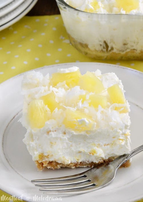 Another no-bake dessert, this pineapple dream from Meatloaf and Melodrama is the ultimate definition of the word “fluffy.” Just look at how jiggly and soft that slice looks. With simple ingredients like graham crackers and Cool Whip, this is another vintage treat that’s going to make Dad feel like a little kid again.
