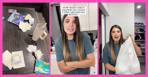 Hannah, who posts on TikTok as @nursehannahbh, is a mom to a toddler and a newborn and recently “enjoyed” solo parenting while her husband was on a trip. She decided to round up all the diapers that she’d changed in the past 24 hours. What ensued was a lot of diapers, even more criticism, and a TikTok trend she hadn’t expected.