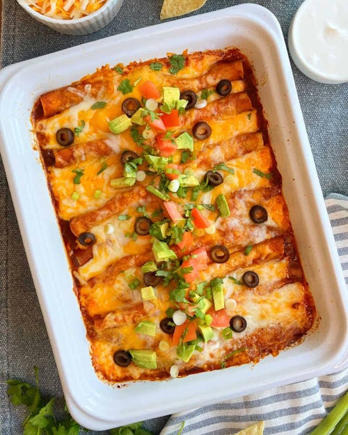 Enchiladas are always a win, and this recipe from Meatloaf & Melodrama is pretty tame and simple for even the pickiest eaters in the fam. Again, customize it with toppings and seasonings you all want, and you can easily double or triple this if you’re celebrating with a crowd on Father’s Day.