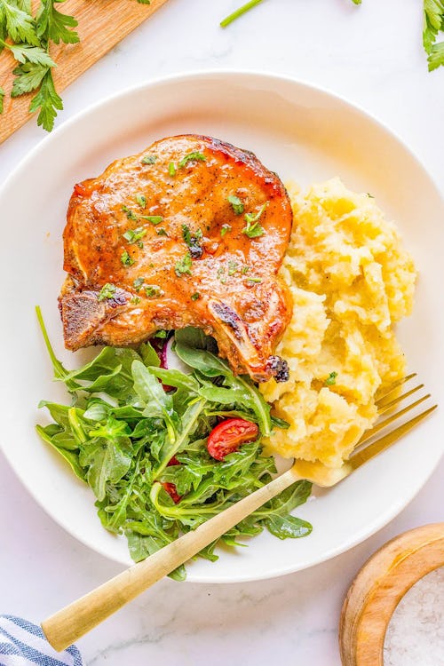 Goodness, it doesn’t get much more classic than a pork chop, and this recipe from Averie Cooks is so simple. Baking them in the oven takes no time at all, and these pork chops are seasoned with a dry rub, so you don’t have to worry about marinating time.