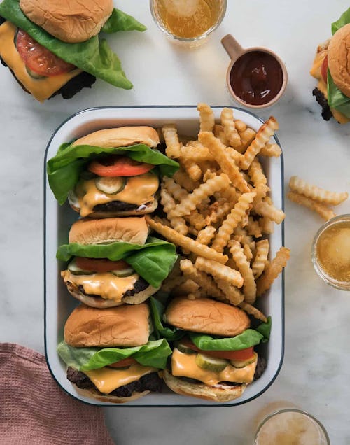 It just doesn’t get much easier than a smash burger, and this recipe from A Cozy Kitchen is so fast. You don’t need a grill or any fancy equipment — just your favorite burger toppings and sides. Let everybody customize their own for a super fun Father’s Day dinner.