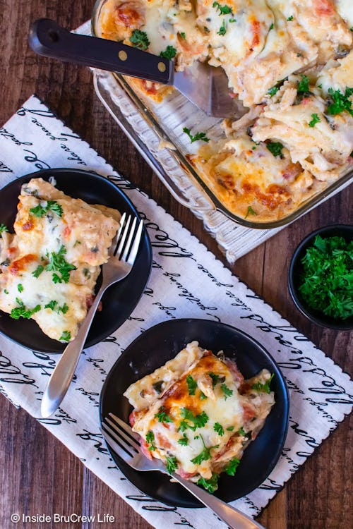 Another pasta dish, this chicken alfredo ravioli lasagna uses frozen ravioli to make the ooiest, gooiest, most comforting pasta meal you’ve ever served. From Inside Bru Crew Life, you can totally customize this meal to fit your family’s needs and wants, and it’s a cinch to pull together.