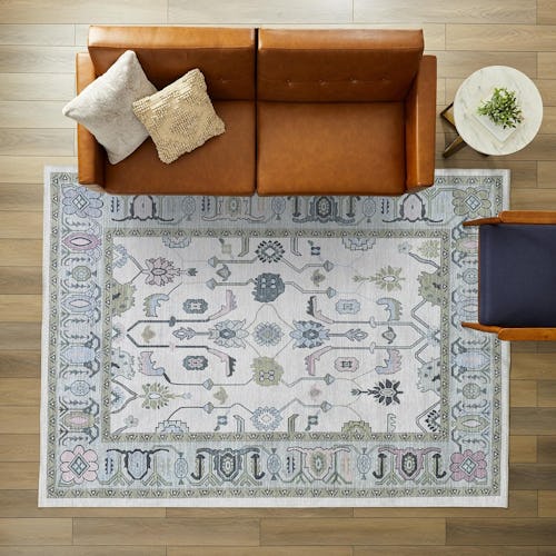 "We just redid our house, and I gained a home office. Because I live with all boys, I wanted a preppy little space all to myself. So I leaned into the pastels and got a minty-colored couch and added this rug to complete my room. It’s darling." — Kate Auletta