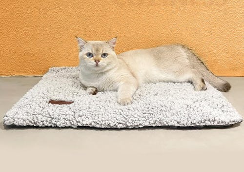 Designed with thermal insulation, this pet bed will absorb and reflect your cat’s body heat so it will keep them warm and cozy without electricity. Unlike some pet beds, it’s noiseless and doesn’t produce a crinkly sound. One reviewer wrote, “My cat absolutely loved this thing. I bought her one and stuck it at the foot of my bed and I [can’t] keep her off it. It [gets] warm pretty [quickly] whenever she uses it.” And, it features a removable zippered cover that you can toss in your washer and dryer for easy cleaning.