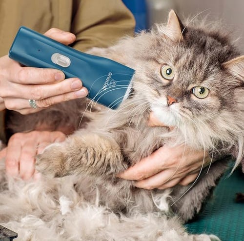 Specifically designed for matted hair, these clippers will provide a smooth shave for a stress-free grooming experience. Since it’s cordless, you don’t have to worry about anything getting in the way or staying close to an outlet. Plus, it’s ultra-quiet, which can help your cat relax. One customer wrote, “My cat was loaded with mats and I had tried to comb them out many times and just made it very painful for her. I ordered these shavers because of the reviews and the reviews were correct. It works very well. It cuts like butter. It’s quiet and I was able to get through a lot of of her shaving without her having too much of a fuss.” By the way, it can last up to 90 minutes on a single charge and is waterproof.