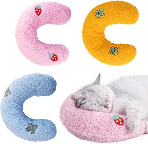 Multiple reviewers mentioned that these cat pillows are calming, well-made, and super soft. They feature a crescent-shaped design that can provide support for your cat’s cervical spine and neck. They’re fluffy and soft and feature a cute embroidered design. According to the brand, they can reduce anxiety and improve sleep. And, they can be tossed in your washer and dryer for easy cleaning.