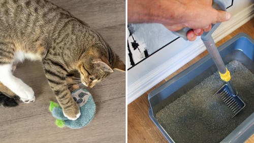 When squeezed, this plush toy will make a purring sound for two minutes that can reduce stress and anxiety and help your cat feel more relaxed. They’ll love snuggling and napping with this toy. And, it’s backed by more than 11,000 five-star ratings. Reviewers mentioned that it’s durable and has a long battery-life. Plus, it’s easy to clean — just remove the mechanism on the inside and wash the soft plush in your washing machine.