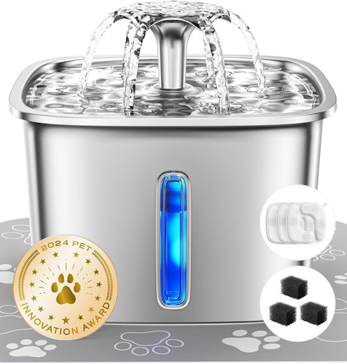 A Stainless Steel Cat Water Fountain That Holds 95 Ounces