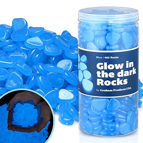 Graham Products 450 Pieces Glow in The Dark Rocks | Indoor & Outdoor Use – Garden, Fish Tank Pebbles, Planter, Walkway, Driveway Decoration & More | for Kids Aged 6 & Up | Powered by Sunlight – Blue