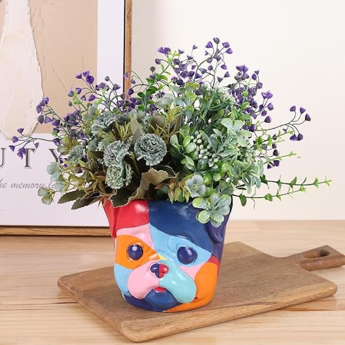 This planter is shaped like a dog head with a colorblock design that’s sure to bring some joy and cheer to your yard. Made of high-quality resin, the planter is great for succulents, cacti, herbs, and other small-ish plants in your yard and garden. It even has a drainage hole that prevents water build up.