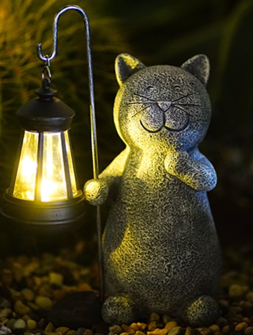 This adorable cat-shaped statue is holding a mini lantern that not only illuminates your yard but also acts as an eye-catching conversation starter. The lantern is solar powered and can work for up to eight hours at night when fully charged. The whole thing is waterproof and weather-resistant.
