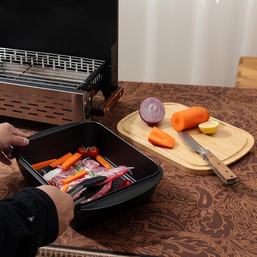 This extra-deep tray was made with backyard grillers in mind. Not only does it give you a convenient place to marinate your meet and veggies while you’re prepping, but the lid doubles as a small bamboo cutting board complete with a juice groove to keep everything mess-free while you cook outdoors. It even has an invisible handle design to make transporting from the kitchen to the grill easy.
