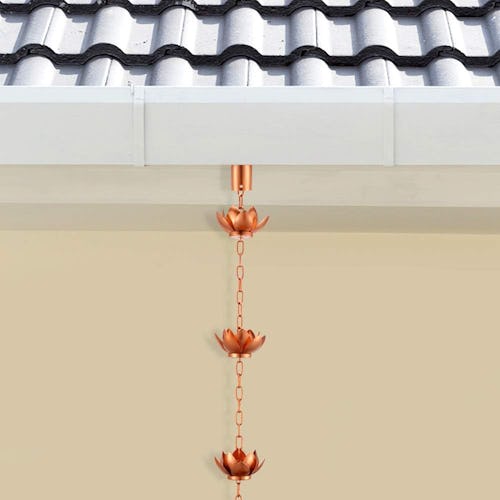 Inspired by a centuries-old Japanese design, this oak leaf rain chain diverts water and can be used to replace a gutter downspout while adding style to your yard. It hangs 8.5 feet long and has 12 lotus flower cups to create a serene vibe for your yard. It’s made of double galvanized iron with a rust-resistant finish that’s weather-resistant for year-round use.