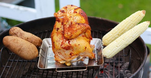 Amazon –Just this one roasting pan can totally up your grilling game and have all your friends asking for your recipes. Fill the center canister with beer — or any liquid that will evaporate and add flavor — then stick a whole chicken directly on top. The stainless steel build distributes heat to evenly cook all parts of the chicken for a crispy outside and juicy inside. Unlike similar roasters, this one comes with two sets of two spikes so you can smoke veggies like potatoes and corn.