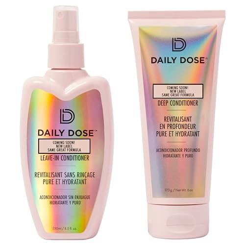 DAILY DOSE Moisturizing Duo: Leave-In Conditioner Detangler Spray + Deep Conditioner, Hair Mask/Masque – Detangles, Repairs, Restores Dry, Damaged, Color Treated Hair for All Hair Types