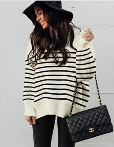 The bold stripes of this oversize pullover sweater will have you feeling so effortlessly chic. Made with a soft viscose-blend knit, it features a crew neck, dramatic batwing sleeves, and a side slit for added style. Comfy, chic, and fashion-forward, this relaxed-fitting top is a versatile go-to.