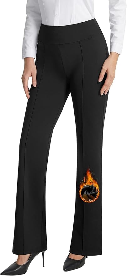 Fleece-Lined Dress Pants Stretchy Enough For Yoga