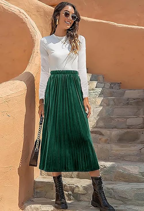 Made for making a statement with its fluttery pleated design and trendy high waist, this velvet midi skirt creates a gorgeous, flowing silhouette. The soft, skin-friendly fabric is comfy, breathable, and an ideal weight for cooler months. Its elegant, calf-length cut ensures you look polished whether you’re dressing up or keeping it casual.