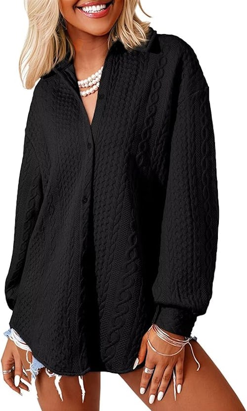 An Oversize Shacket In The Coziest Cable Knit Texture