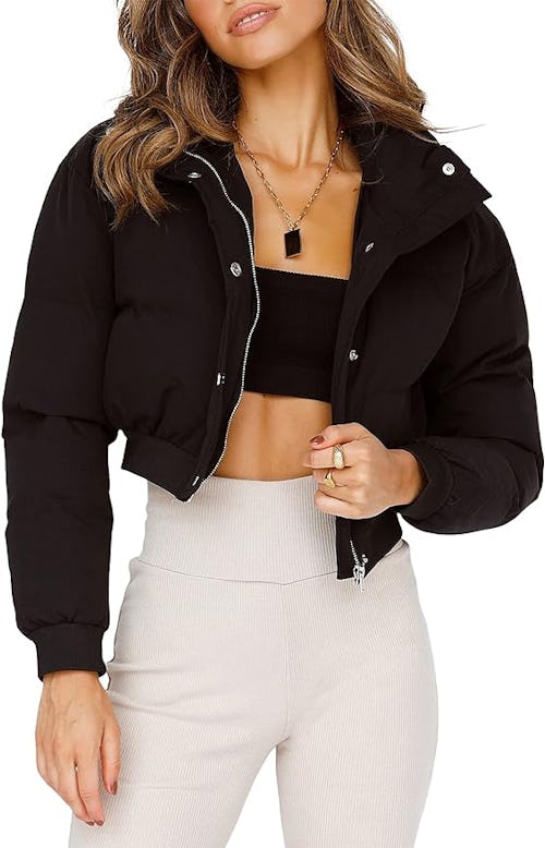 Who knew a puffer jacket could be low-key sexy? This cropped puffer is exactly that. Its fully lined design and the drop-shoulder fit give it a relaxed vibe that keeps you warm, while it’s high neck, ribbed cuffs, and snap-button closure keep the silhouette chic.