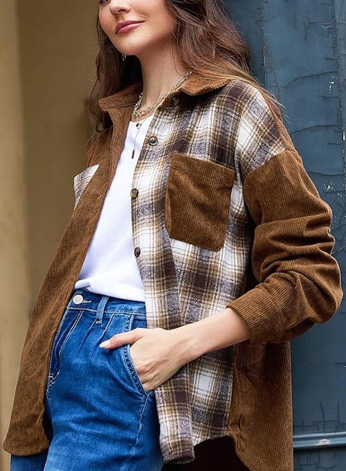 No need to steal your boyfriend’s button-down — this corduroy shirt has the perfect oversize fit and a color block plaid that’s all your own. Soft, stylish, and ready to layer, it’s the ideal piece for casual cool-weather looks. Warm yet lightweight, this shacket is ideal for in-between days when the weather can’t make up it’s mind.