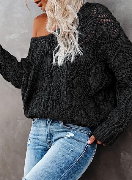 This pullover sweater features a stylish V-neck design wide enough to wear off-shoulder, along with a hollowed-out crochet fabric with a lightweight, breathable feel. The relaxed fit is loose enough to feel free, but cute enough to turn heads. Cozy and sophisticated, size up for that effortless falling-off-the-shoulder vibe.