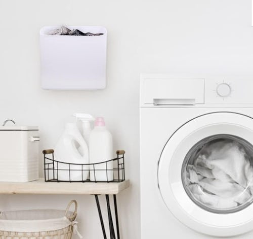 This versatile laundry room storage basket is perfect for keeping small items out of sight, yet within convenient access. It’s constructed from heavy-duty plastic and features a wide, angled opening, plus a screw hole and strong magnetic backing so you can mount it on walls or simply stick it to the side of appliances. Use it to store detergent pods, cleaning rags, and so much more.