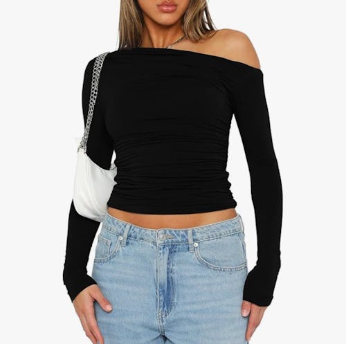 Ideal for pairing with the lowest-rise Y2K cargo pants, this long-sleeve top has a slightly cropped hem to bare some skin without going full midriff. The stylish, wide boat neck also lets you style it off the shoulder, and the ultra-soft rayon fabric is blended with spandex for a form-fitting silhouette that’s not too tight.
