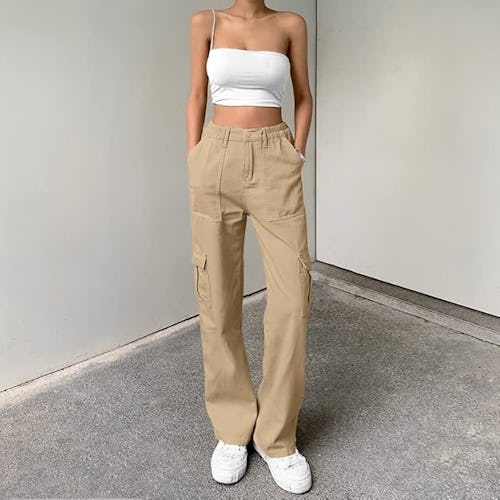 These Y2K-inspired cargo pants are a budget-friendly option that look and feel super luxe. They’re made of 97% cotton with just a touch of spandex for stretch. These pants have classic style with a relaxed, straight-leg fit, elastic waistband, and six functional pockets.