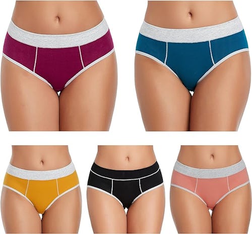 Cotton hipster briefs are about as practical as it can get when it comes to underwear, but this five-pack doesn’t lack any style. They feature thick, stretchy waistbands and contrasting lined details, which add a sporty, cute look to these panties. Reviewers confirmed that these stay in place all day and are oh-so soft.