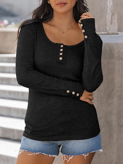 With a stretchy fit that hugs your body, this henley top is surprisingly alluring for how cozy it is. It’s made of a warm, rib-knit fabric that feels nice, according to reviewers. And this top is complete with adorable details like contrasting buttons on the neckline and wrists for a little extra dose of style and texture.