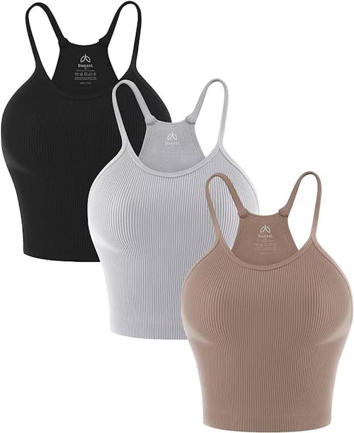 OQQ Ribbed Seamless Tank Tops (3-Pack)