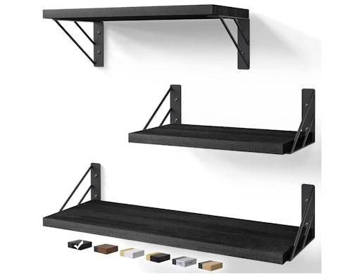 These modern floating shelves look like an expensive find but they’re actually really affordable. They’re constructed from real (and renewable) wood and rustic metal brackets with a geometric design. And since they can be hung two ways — facing up or down — you can personalize them to suit your needs.
